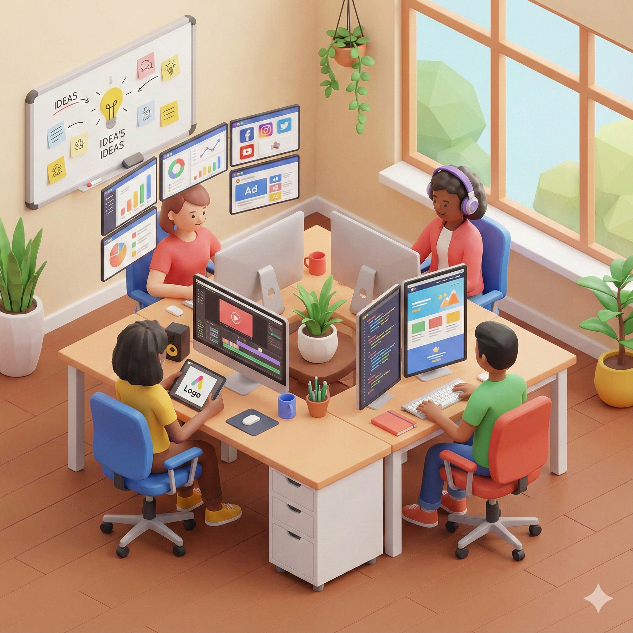 Kami menawarkan solusi kreatif berbasis data yang dirancang khusus untuk kebutuhan bisnis Anda. Dengan tim profesional, teknologi terkini, dan fokus pada hasil nyata, kami siap menjadi mitra terpercaya yang mendukung pertumbuhan bisnis Anda secara berkelanjutan